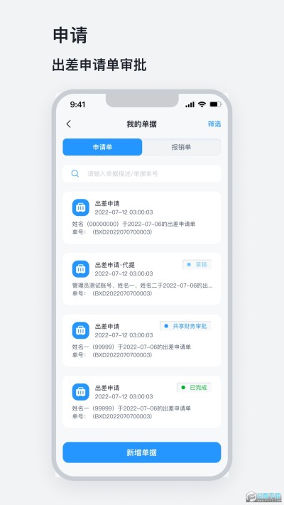 1.各种报销单据,用户都可以直接在线上进行申请。