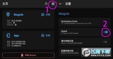 2.点击主页中的【Magisk】,之后选择设置打开 ,在列表中将【Zygisk】开启;