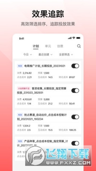 2、效果追踪:高效筛选排序,追踪投放效果