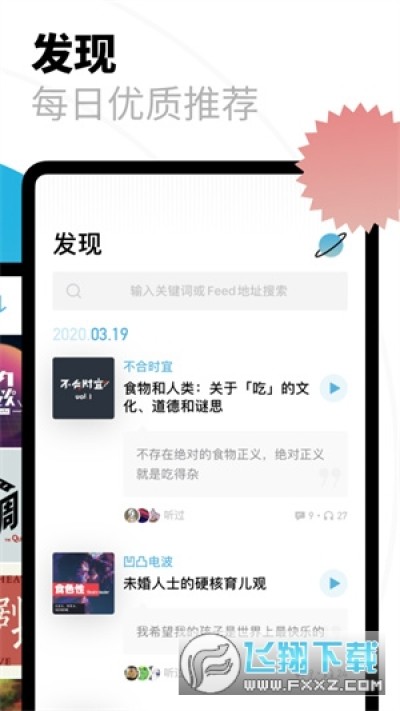 ·每天都有新的播客节目可以自由观看,让用户每天都有新发现