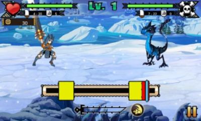 在战斗的过程当中,屏幕下方会有一个行动槽,不同颜色的方块会在此处出现,并且还有一条会左右来回移动的蓝色光标。玩家必须在蓝线与方块重合时点击屏幕,不同的方块将让猎人采取不同的行动,黄色为攻击、橙色为技能攻击(可以让怪物进入眩晕、中毒、麻痹、睡眠等状态)、红色则是防御。