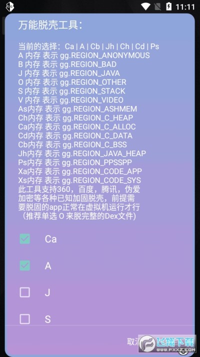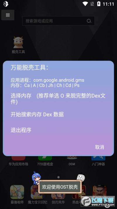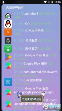 3.点击悬浮窗,在列表中选择要脱壳的软件;