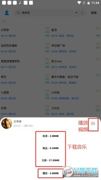 3、我们随便点击一首音乐,就可以进行播放,下载不同质量的歌曲以及播放视频;