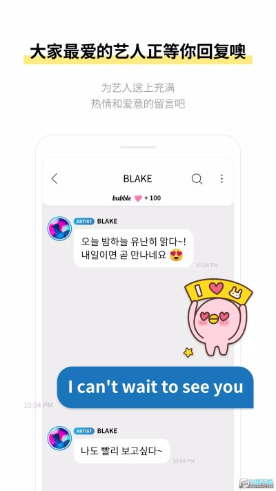 《bubble for CUBE》是一款能够很好的与喜欢的爱豆进行交流的软件,拥有丰富的功能和优势,让用户能够轻松关注艺人的最新动态信息并与其进行互动,无论你是哪位艺人的忠实粉丝,这款应用将为你带来更加便捷、亲身参与的追星体验,不仅可以获取到艺人最新的音乐作品、影视作品和演出活动等各种消息,还可以第一时间了解到艺人的行程安排,让你能够提前预知艺人的活动,抢先参与到与艺人的交流互动中去,无论是在线留言、评论,还是分享心情和艺人互动,都能让你更加紧密地与自己喜爱的艺人建立联系,在这个应用中,你可以时刻关注艺人的日常动态,了解到不同侧面的她/他,真正做到粉丝的最贴心伙伴。