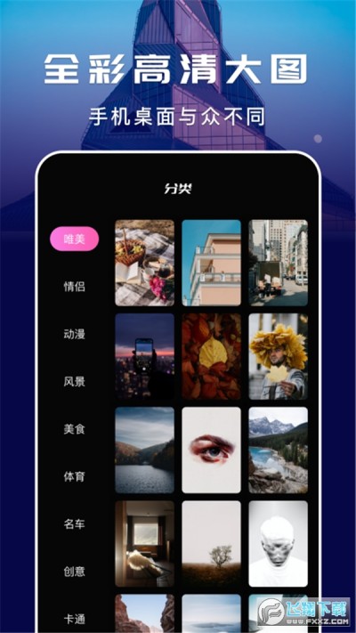 3、创意壁纸:静态壁纸模动态壁纸模板任你挑选,选择关于你的个性风格,给你一个梦幻桌面。
