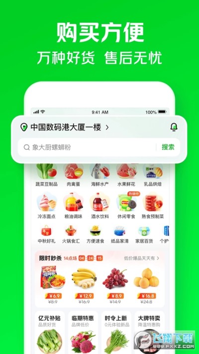 小象超市官方手机版是一款便捷的为用户们提供一站式购物服务的软件,这款软件为用户提供便捷的蔬菜水果购买服务,平台内所提供的商品内容还是非常丰富的,你需要的,一站购齐,最快30分钟送达!在这里新人注册领取大额福利红包,让你省心省力省时间。