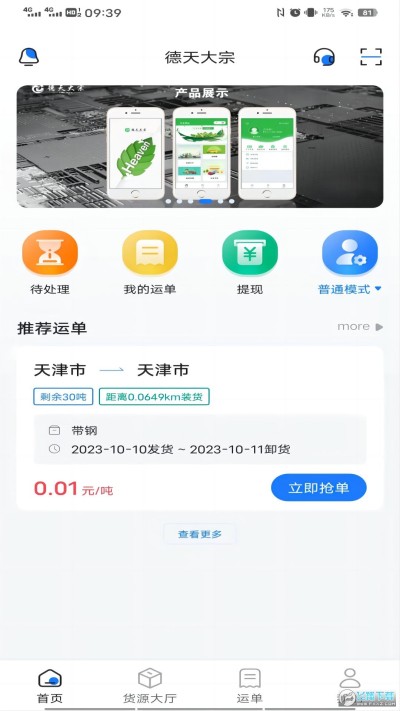 德天大宗APP是一款物联网货运平台软件,货主在平台发送运单,司机端可在平台接单,平台跟进运单并提供途中遇到问题的解决方案,最后完成运单的结算。