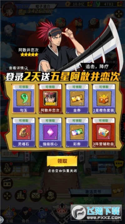 ★ 每日登陆即可领取,次日登录领取强力五星阿散井恋次~