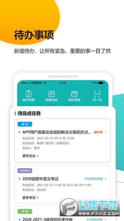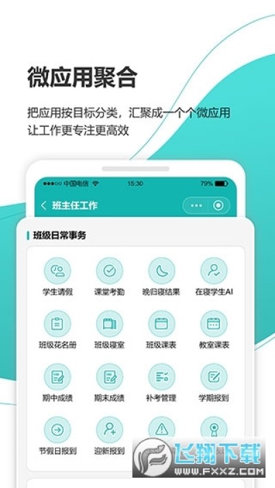 包括校园通讯录、校园圈、即时消息、校园公告、办公邮箱、日程提醒、电话会议、办公短信、语音通知等,满足日常办公管理需求。
