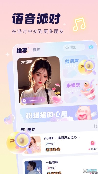 1、多元语音房间:梦音提供多种类型的语音房间,如游戏、音乐、旅行等,满足不同用户的兴趣爱好。