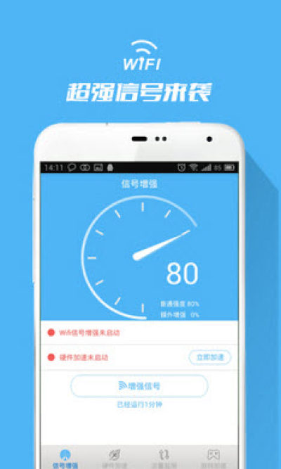 WIFI信号增强工具是一款可以在不增加手机辐射的情况下增强手机wifi信号的应用软件,可有效提高wifi平均信号50%以上,功能十分强大,感兴趣的朋友切不可错过哟!