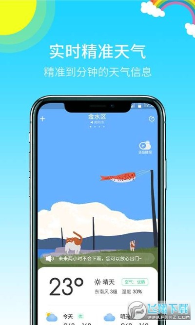 多彩天气-简约、准确的天气预报APP。 多彩天气采用权威数据源授权预报信息,可查看国内外20多万个城市的实时分时天气预报、温度、24小时预报、15日天气预报、空气质量指数及城市空气质量全国排行榜、生活出行指南。自动准确定位,能准确定位至小区街道及时推送天气信息,预测几点几分下雨下雪,还能准确预测雨停雪停时间。极端天气预警实时推送,高温、严寒、暴雨、台风等,方便您提前合理安排好出行。提供穿衣、洗车、紫外线、运动、旅游等生活指数,还有精彩阅读、星座运势、黄历万年历等一系列趣味功能。准确天气信息,智能语音播报,解放双手,把天气预报送到你耳边,是您日常生活、出行旅游不可或缺天气预报APP!