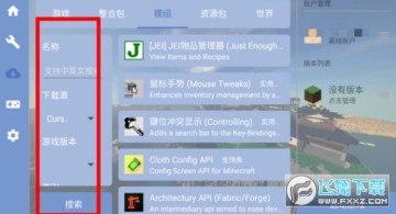 2、同样的就是模组下载,支持中文英文搜索,可以按下载源,游戏版本,类型等等进行挑选
