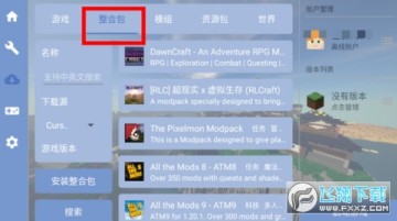 1、FCL启动器最方便的一点就是可以在这里直接下载整合包以及mod,点击整合包栏目即可看到