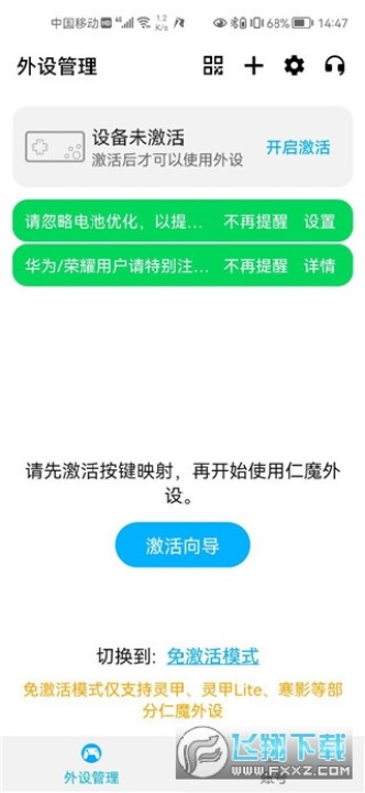 3、点击外设管理,这里需要激活设备,点击开启激活就可以设置;
