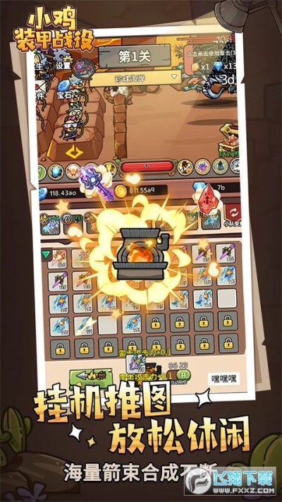 《小鸡装甲战役》是一款休闲放置类挂机的游戏,主要以获取各种不同的鸡仔在千奇百怪的大陆和怪物的进攻下,进行家园保卫战斗。在这个途中获取各式各样上千种箭束、宝石、神器等强化鸡仔,并且将鸡仔和箭束结合搭配,不断培养,变的更加强大,从而在不同的大陆战胜越来越强大的敌人。