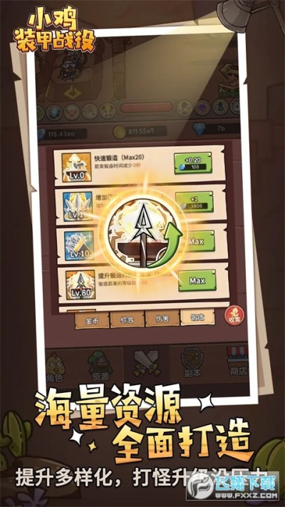 5、点击收集金币资源:通过不断点击屏幕来获取金币和资源,用于升级小鸡和农场设施,培养更强大的战斗力。