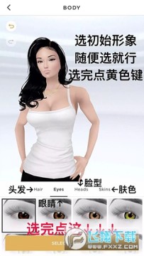 4、选了人模之后选初始形象,随便选,能让你现在选的东西都会一直在你衣柜里,选好之后点击黄色键进入下一个页面。