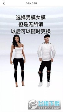 3、注册好之后选男模还是女模,但是不重要,以后可以随时在更衣室换,这里选的人模只是你第一次进游戏的性别,点击人物就算选好了。