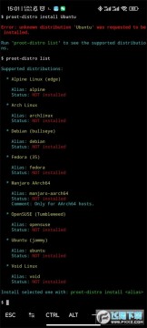 proot-distro支持几乎所有常用的Linux发行版:Alpine、Arch、Debian、ubuntu、manjaro等等。