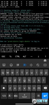 此处以大家用的最多的Ubuntu来演示,安装一个上面列出的ubuntu 22.04 (jammy)环境,使用proot-distro install ubuntu来安装,安装过程需要联网,耐心等待。