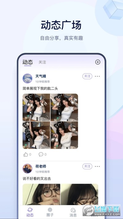 3、【动态广场】自由分享,真实有趣,随时找到与你同频的TA。