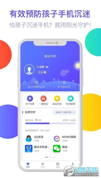 阳光守护家长版最新版是一款管理孩子使用的手机的软件,帮助家长监督自己孩子玩手机,规划孩子的上网时间,养成好的学习习惯,也能督促孩子们的学习进度,多种类型的教育咨询等,帮助孩子脱离手机网瘾,控制孩子手机的使用的时间,守护孩子阳光健康的成长。