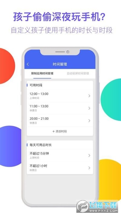 2、【时间设置】对自己孩子上网的时间进行设置,方便用户管理孩子的上网的频率。