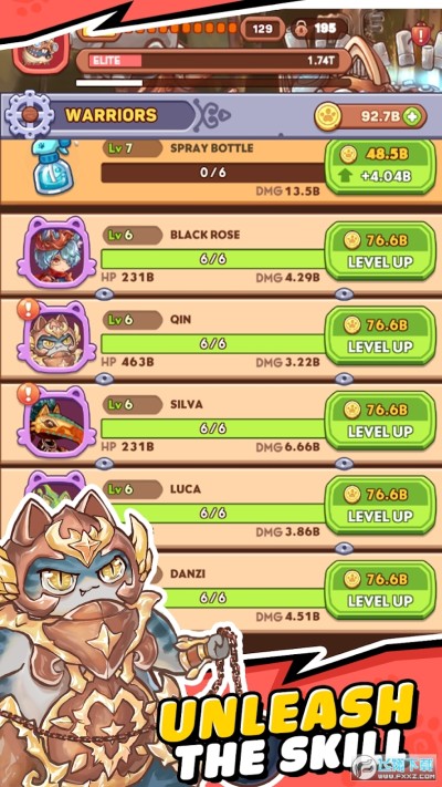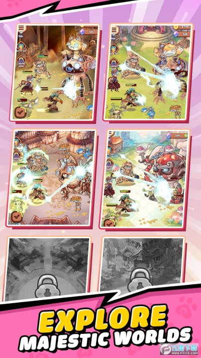 招募猫战士大军,每个猫战士都有独特的外观和能力。升级以释放他们的全部潜力,成为强大的战士,准备好参加激动人心的战斗。