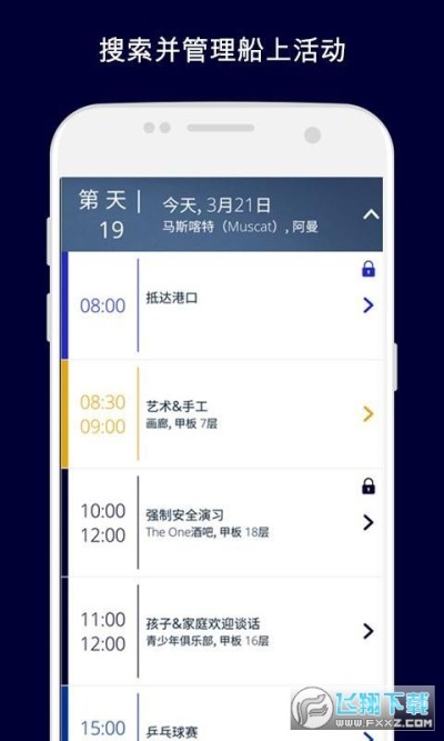 2、应用涵盖导航、预订、管理等多种功能,全方位满足您在邮轮上的需求。