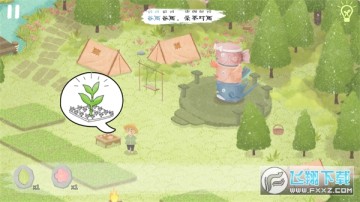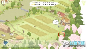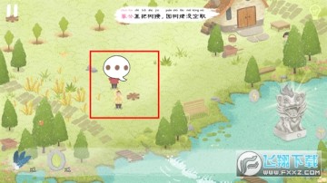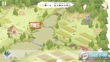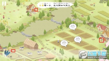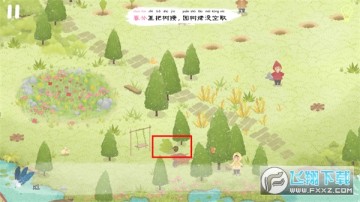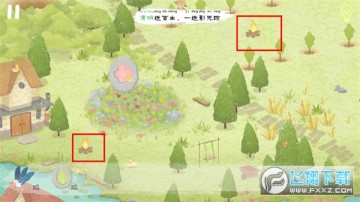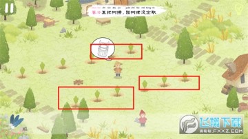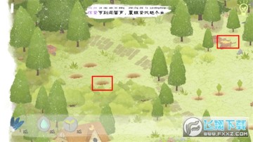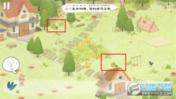 接着我们来帮助左上的农民伯伯种树,在场景的三个地点会发现小树苗(见下图)。获得“树苗”后,拖动到农民伯伯身边的3个红框下种起来。