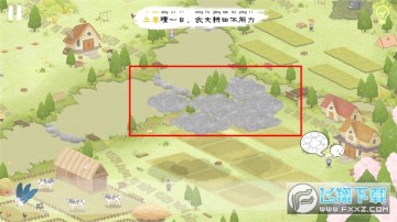 在农夫下方小屋前的红框处,点击可以获得钉耙。(点的不好会关门,注意多点两下确定位置)。将钉耙拖动到农夫手上开始耕地。