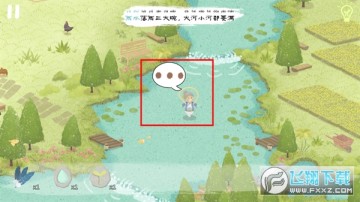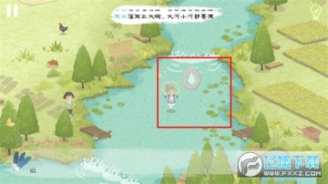 当全部河流都被灌满后,河边的老婆婆兴奋地跳进了河里,点击婆婆旁边可获得“水滴石板”,大雨下,田地上方也可获得嫩芽石板。