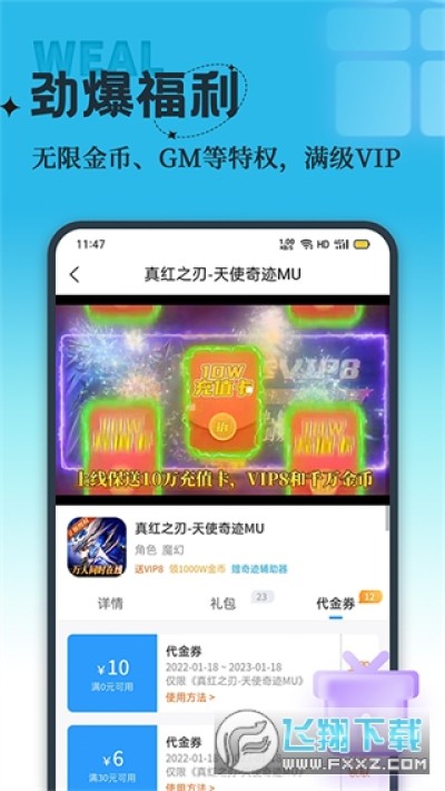 3、免费首充、手游礼包、海量礼包、代金券让你优人一级!