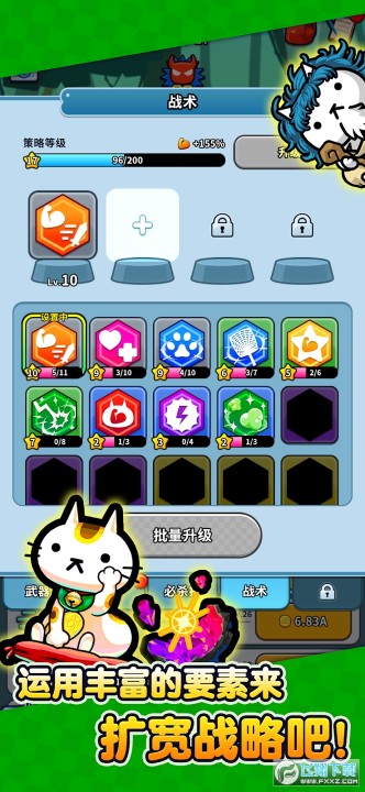 2、快速积累经验和资源,个性化喵星人发展,通过强化训练和搭配不同技能,打造最强喵星人队伍,策略性战斗布局。
