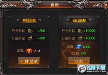 1、行会捐献:可获得行会贡献和行会声望。行会贡献可以用来升级行会技能;行会声望可以在行会商店购买物品。