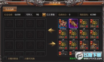 1、行会仓库:捐献装备可以获得仓库积分,消耗仓库积分可兑换装备。