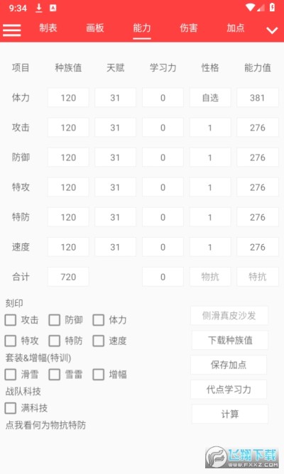 输入努力值:输入精灵的努力值。(每项努力值不超过255,六项总和不超过510)
