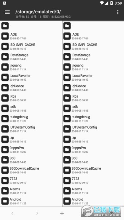 打开 MT 管理器后第一眼看到的就是它的左右两个操作窗口,该设计已经是 MT 的标志之一,与之对应的是双窗口操作模式。如果你是第一次使用,开始会不太适应,但相信我,等你花点时间来熟悉它后,你的操作效率会大大高于使用其它文件管理器。