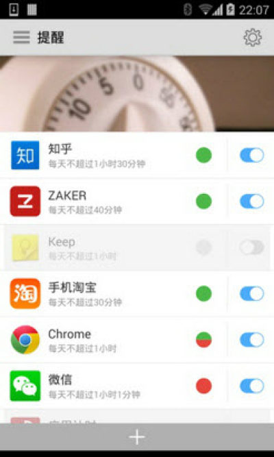帮你记录手机上每个应用的使用时间,生成统计报表随时查看和分享;还可以对每个应用设置时长限制,超出自动提醒;再也不用担心玩手机忘记了时间,健康生活更多快乐。