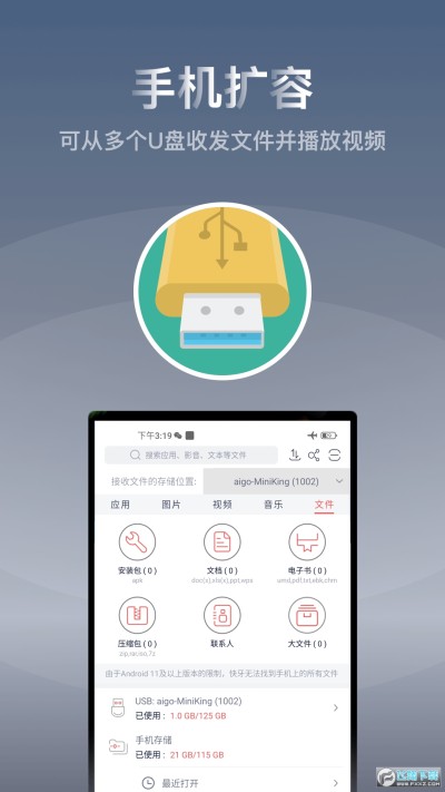 【能扩容】支持管理查看U盘内资源,扩展手机存储空间