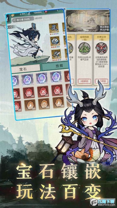 3、快乐修仙养成,灵宠、宝石、武器、技能等等组合搭配,意想不到的变强之路