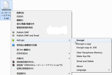AxCrypt 的使用十分简单,安装完成后,鼠标右键点击要需加密的文件,就会出现 AxCrypt 的选项,点击“Encrypt”即可给文件加密了。如果希望加密之后的文件可以在未安装 AxCrypt 的机器上使用的话,可以选择“Encrypt copy to .EXE”(加密成.exe文件) 就可以了。