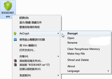 另外,补充一句,有部分伪加密工具的加密效果是仅在本机生效的,复制到别人的机器上就能正常使用了。而使用 AxCrypt 加密后的文件,无论放在网盘、U盘或是别人的电脑上还是使用 Dropbox、金山快盘等同步都依然是加密的,都需要解密后才能使用。