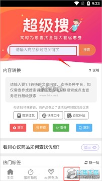 1、打开之后进入app主页面,然后选择“一键搜券”选项。