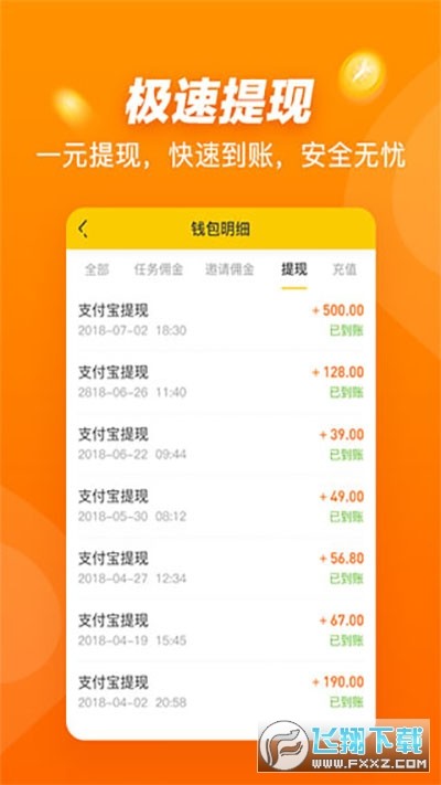 3、提现快:满2元即可提现,秒到微信、支付宝,轻松实现”每天半小时,日赚100元”的小目标。