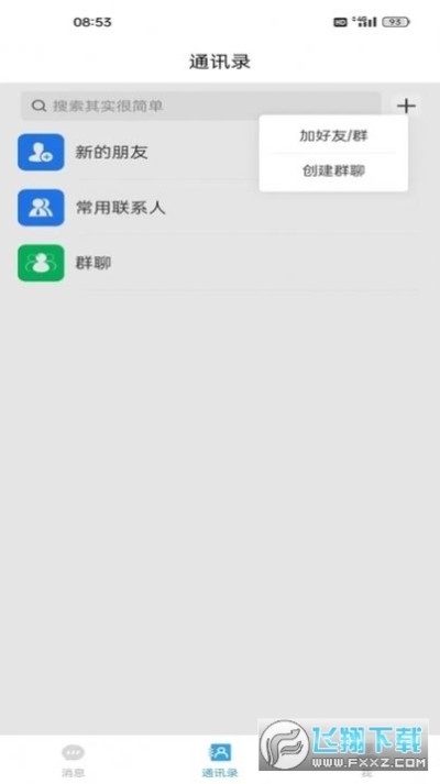 1.打开软件,进入主页,点击页面下方的【通讯录】