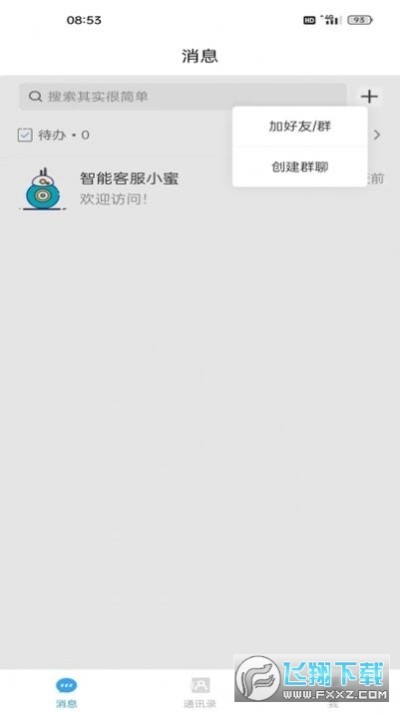 3.会出现功能列表,如加好友/群,或者创建群聊;