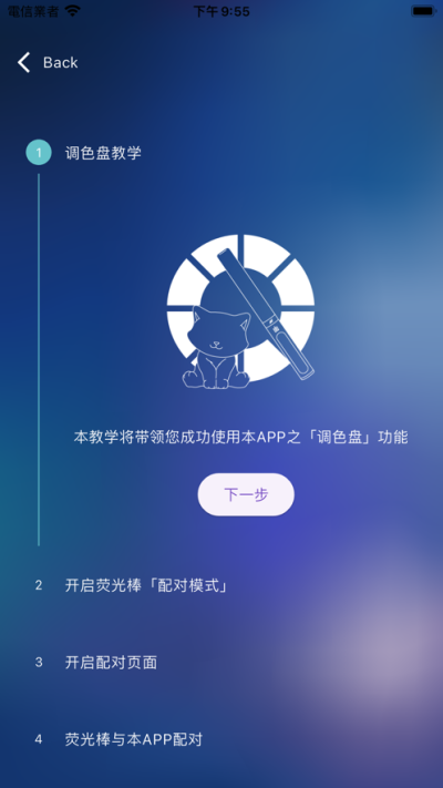 开启荧光棒/夜灯电源,直到显示蓝色灯色