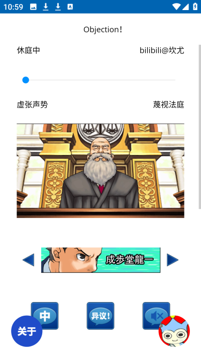 点击右下角的律师徽章可以开始休庭,休庭期间不会触发“异议!”